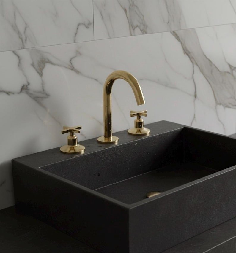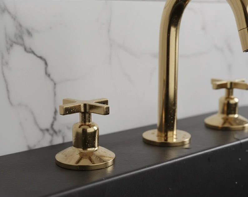 Antique Brass Bathroom Faucet, 3-Hole Widespread Vanity Faucet, Unlacquered Brass Sink Fixtures, Handmade Moroccan Brass TapAntique Brass Bathroom Faucet, 3-Hole Widespread Vanity Faucet, Unlacquered Brass Sink Fixtures, Handmade Moroccan Brass Tap
