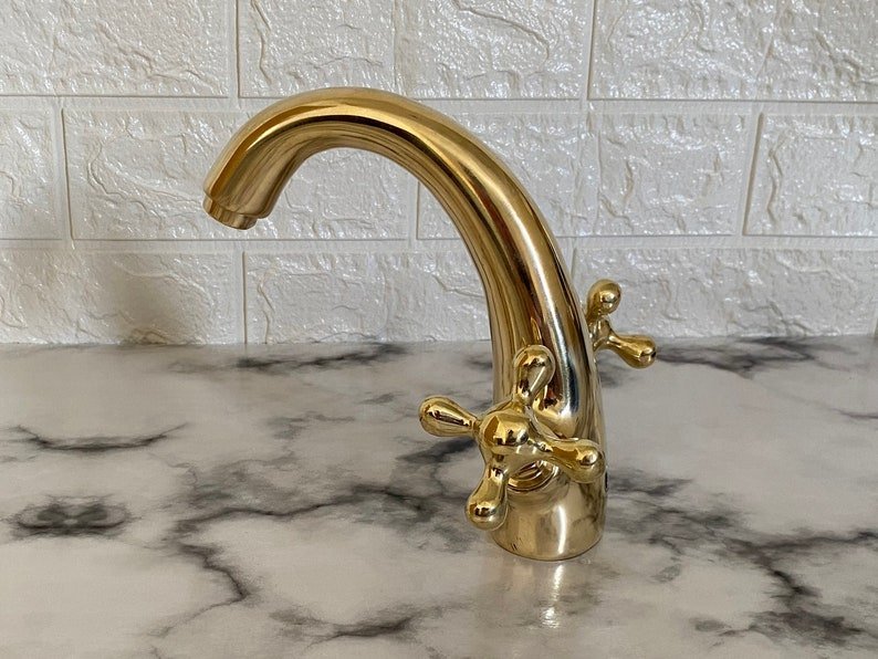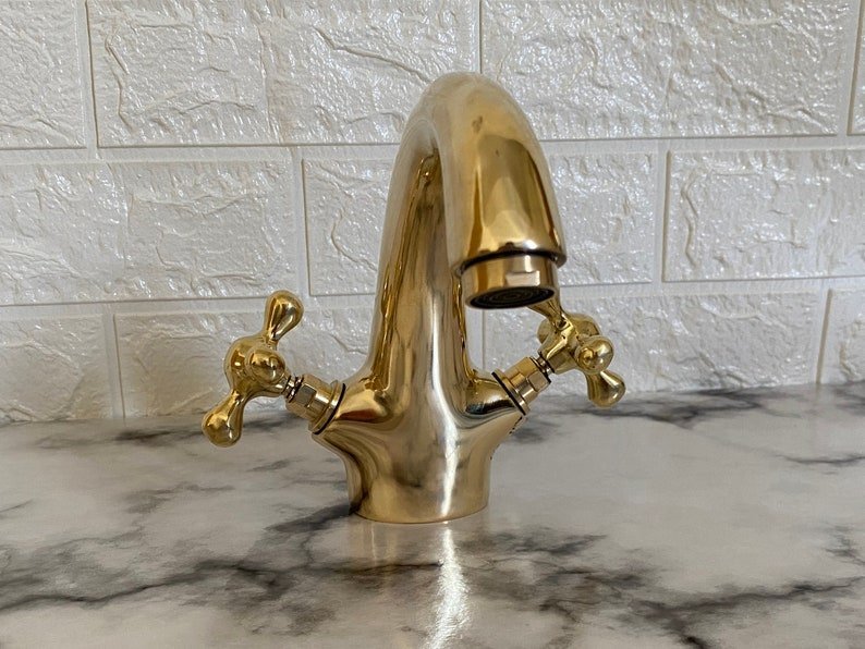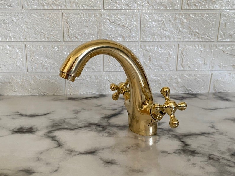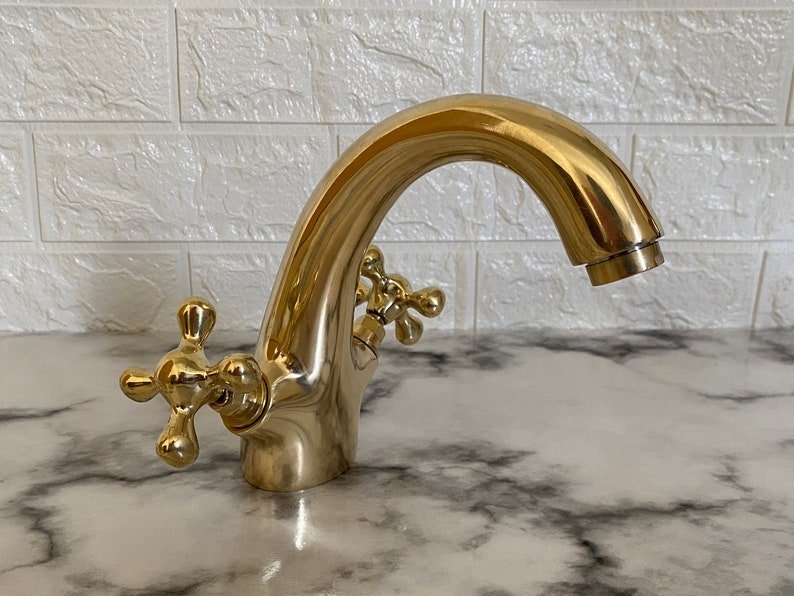 This faucet is 100% handmade of solid unlacquered brass, it gets warm patina overtime. It will add an elegant, charming and antique decoration to your space.