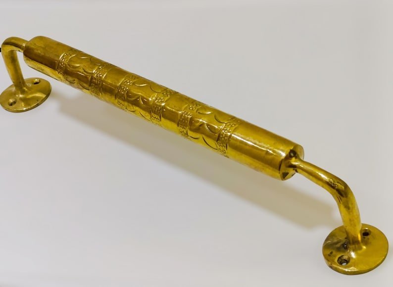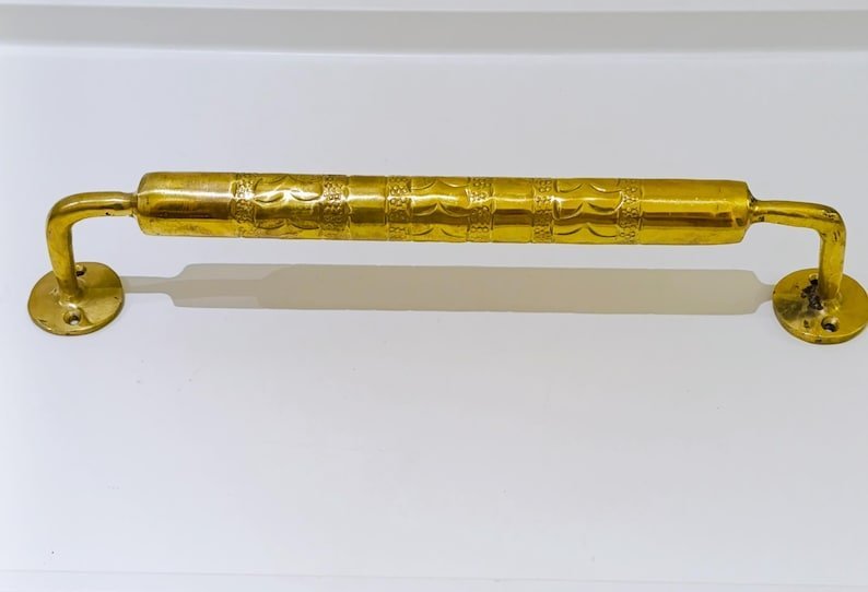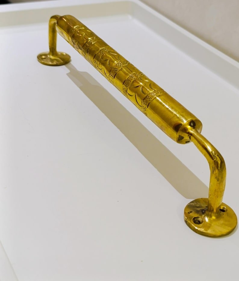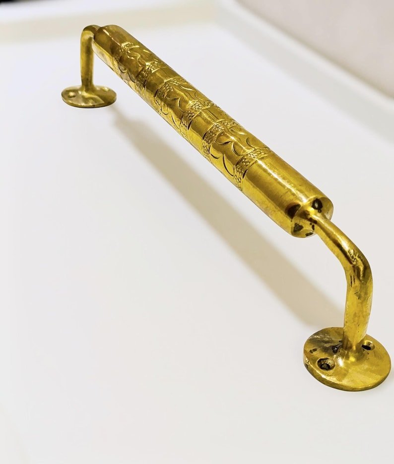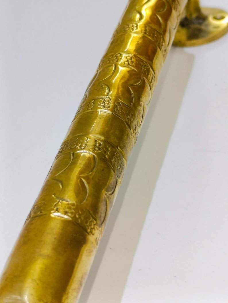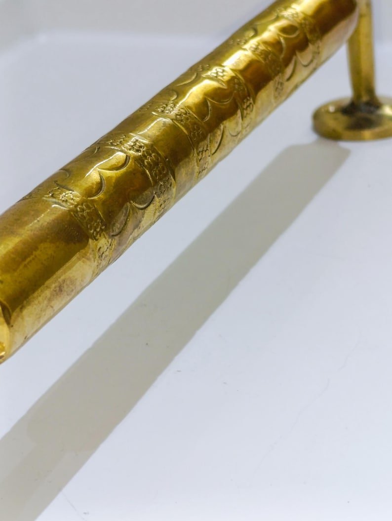 Elevate your space with this hand-engraved Moroccan brass towel rack, a stunning piece of artisan hardware perfect for bathrooms, kitchens, or entryways. Made in Morocco using traditional techniques, this solid brass towel holder features intricate floral engravings and a polished golden finish for a luxurious, timeless appeal.