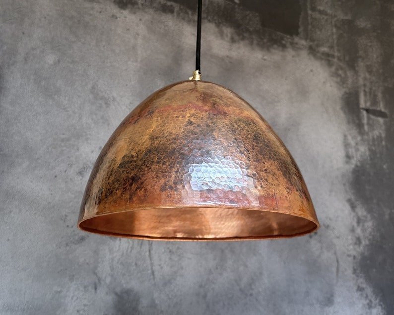 We pride ourselves on being honest and transparent. Your satisfaction is our priority, and we’re always here to help.Our hammered copper pendant light. Crafted with care, this pendant light features a beautifully hammered copper shade that exudes warmth and character. The rich copper finish adds a timeless appeal, while the rustic design adds charm to any space. Whether you’re illuminating a cozy breakfast nook or adding ambiance to your kitchen island
