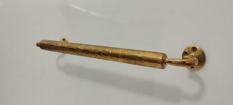 From solid brass tube, our creative craftsmen crafted this engraved towel bar.