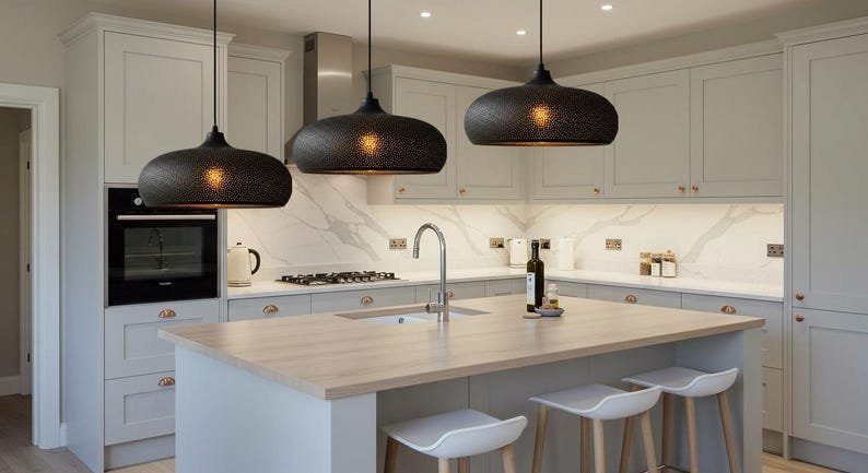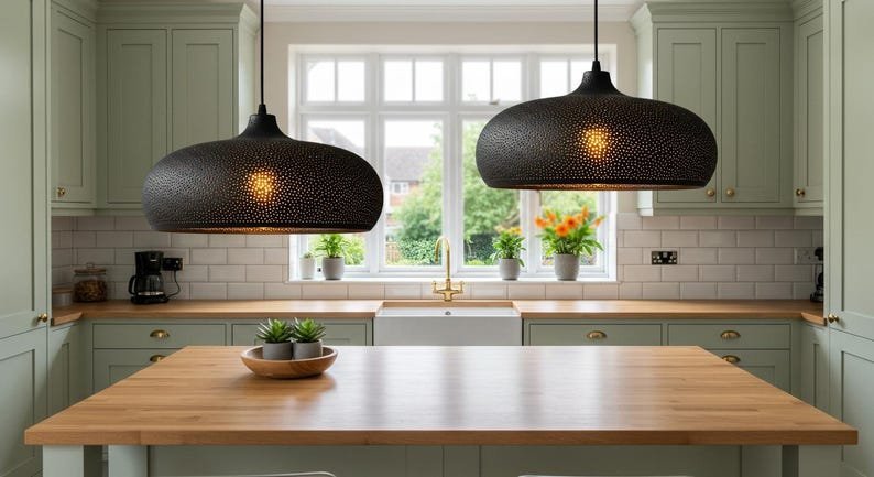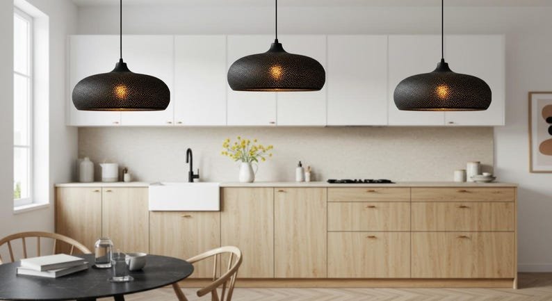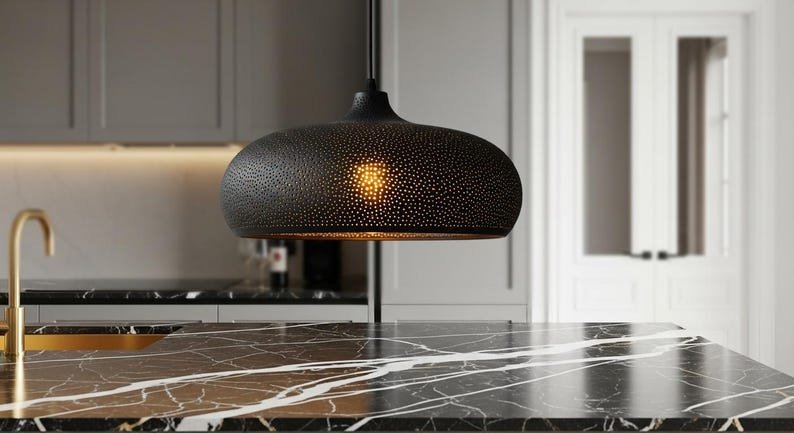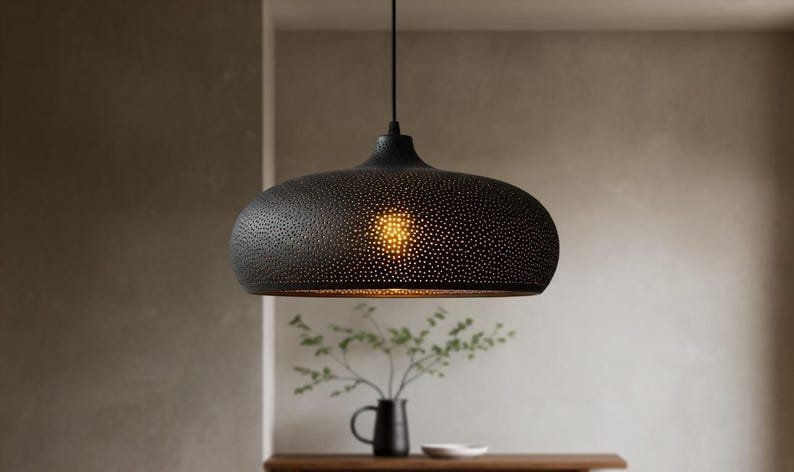 The dome-shaped shade casts a warm, ambient glow, perfect for creating a cozy atmosphere in any room – whether over your dining table, in your entryway, or as a statement piece in your living room.