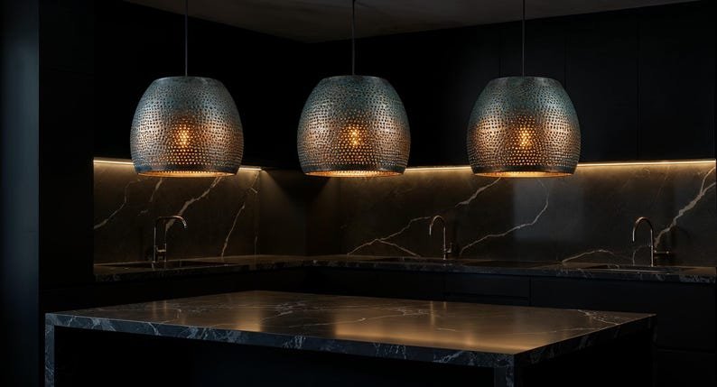 ✨ The rich contrast between the polished copper base and the oxidized green patina top adds character and depth to the lamp, casting a warm, elegant glow. Ideal for kitchen islands, dining rooms, cafes, or entryways.