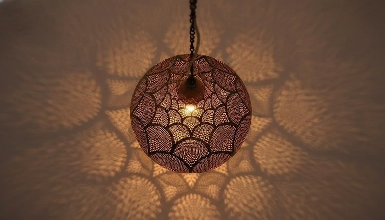 Simple Moroccan pendant lamp. A stunning Moroccan style hand-made ceiling light fixture- a pendant lamp is designed to enhance the exotic beauty of your home decor. Exclusive custom lighting designs from Arabian Home Décor will ensure that this Moroccan piece of art will complement your existing décor and completely enhance the ambiance by filling in the portion of darkness while leaving the remaining area soothing and serene