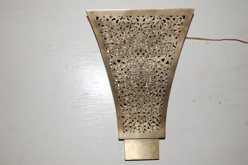 Moroccan Brass Wall Sconce – Handcrafted Vintage Brass Light Fixture, Decorative Wall Lamp for Living Room, Bedroom & Hallway