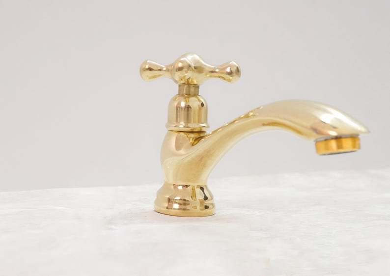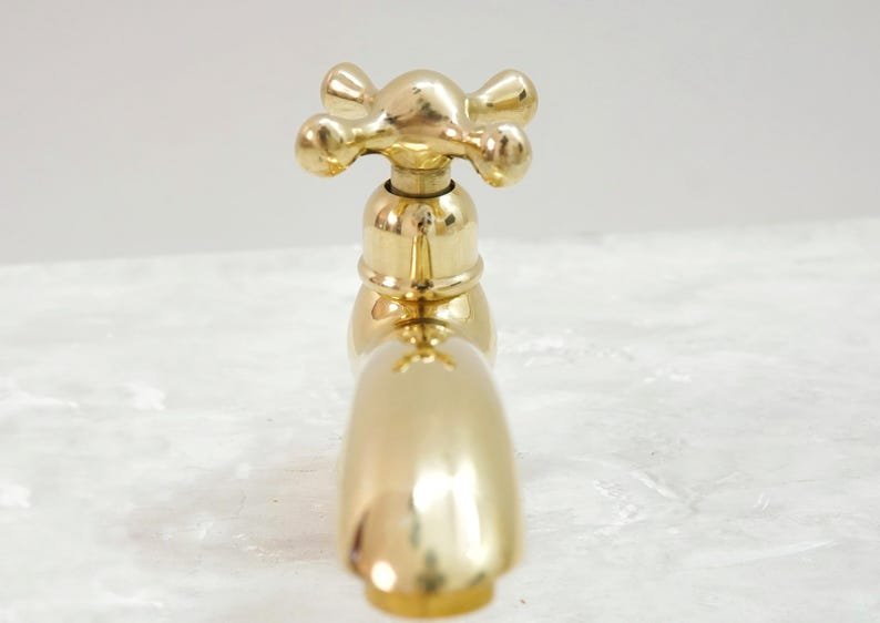 Bring timeless charm to your bathroom with this handcrafted unlacquered brass faucet from SeeVOOL . Made by skilled Moroccan artisans, this wall mounted faucet features an elegant, vintage design that ages beautifully over time.