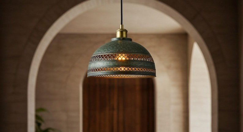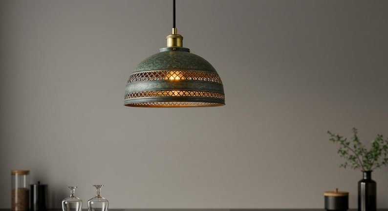 Handmade Brass Dome Pendant Lamp with Antique Patina Finish