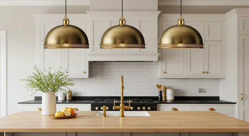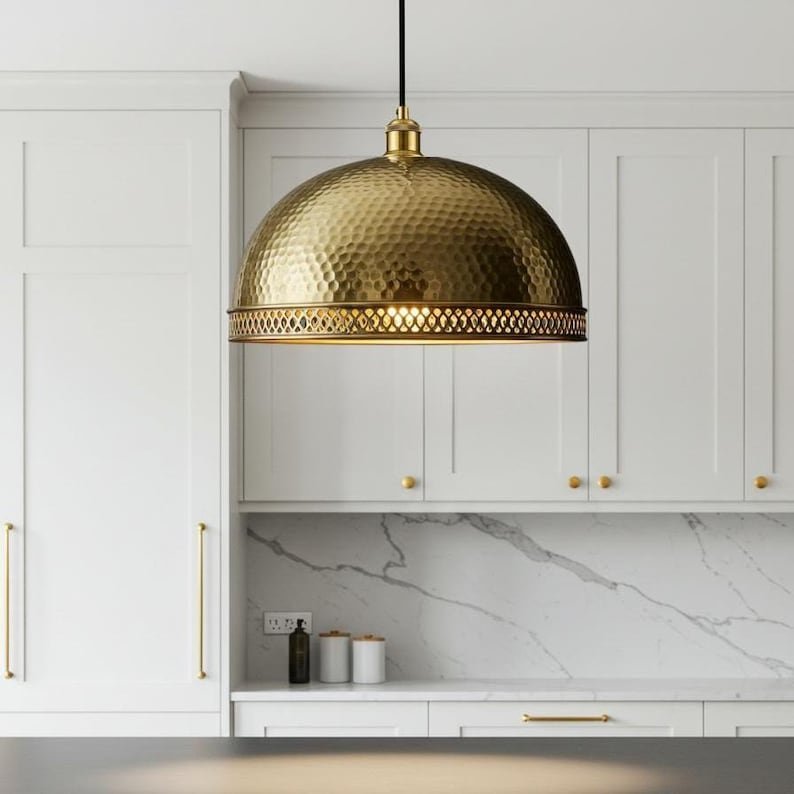 Elevate your interior with this handcrafted brass dome pendant lamp, where traditional craftsmanship meets contemporary elegance. Perfectly suited for kitchens, dining rooms, or cozy cafés, this pendant light adds a warm, golden glow and a touch of luxury to any space.