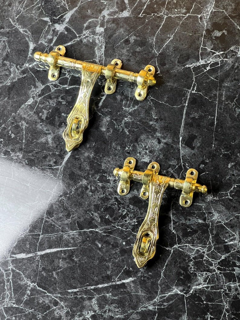 Discover the exquisite Moroccan Brass Sliding Door Bolt, a perfect fusion of traditional artistry and modern functionality. This handcrafted brass door latch is designed to provide both security and sophistication, making it an elegant addition to your home.