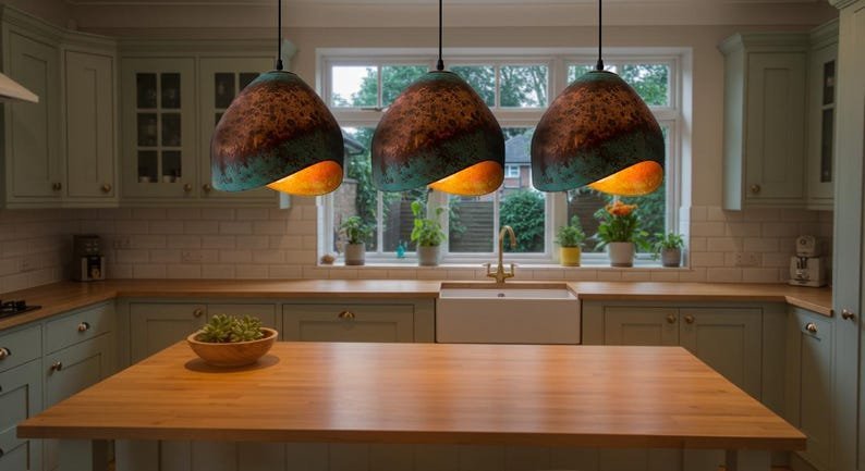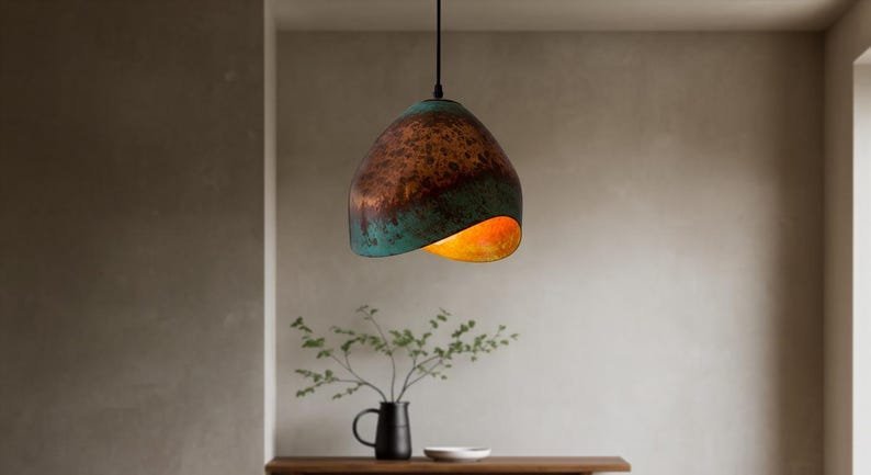 Handmade Copper Dome Lamp with Green Patina – Rustic Artisan Lighting