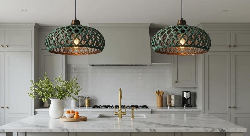 Handmade Green Patina Light , Hanging Dome Lamp , Copper Dome Pendant Lamp, kitchen island Light,Copper Dome Lamp