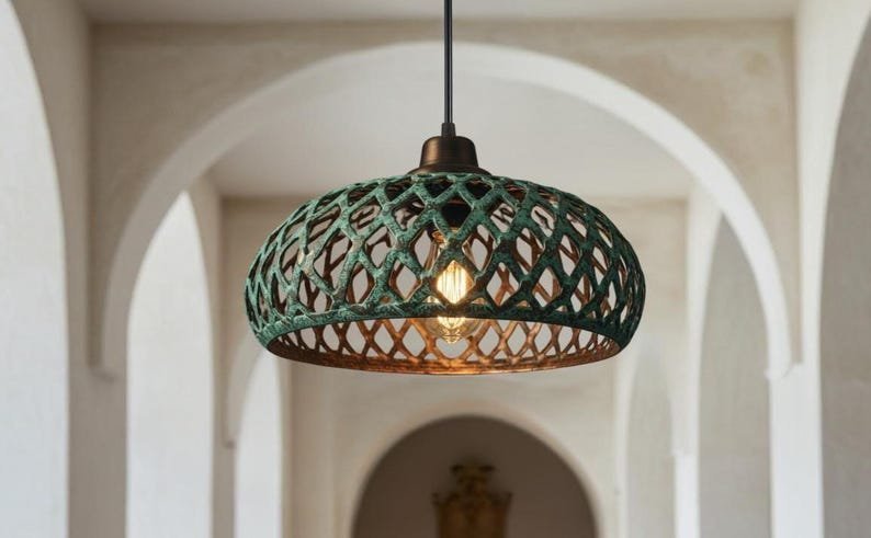 Illuminate your space with timeless character and artisanal charm with this handmade Copper Dome Pendant Light. Featuring a unique swirling design and a rich patina finish, this pendant blends rustic elegance with industrial flair, making it a statement piece for any interior.