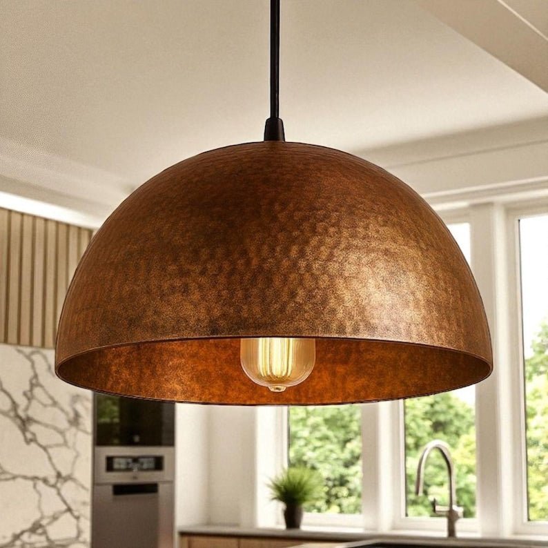 Bring warmth, texture, and artisan character into any space with this hand-hammered brass dome pendant light. Crafted from solid brass and finished with a gently hammered surface, this dome casts a soft, inviting glow and becomes a focal point in contemporary, boho, Moroccan, or industrial interiors.