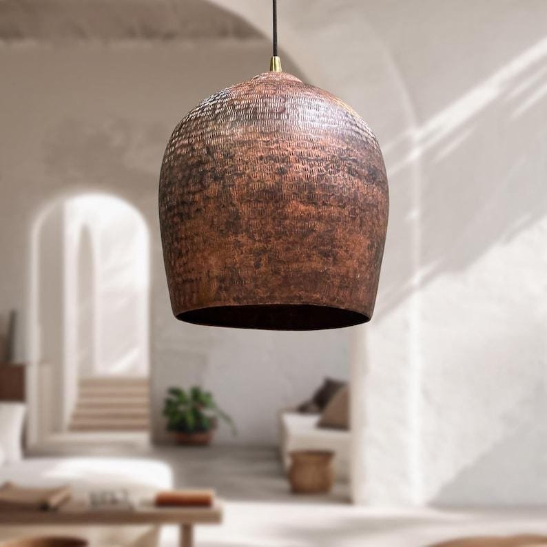 Hammered Copper Pendant Light, Solid Handmade Copper Ceiling Light, Copper Dome Kitchen Island Pendant Lighting
