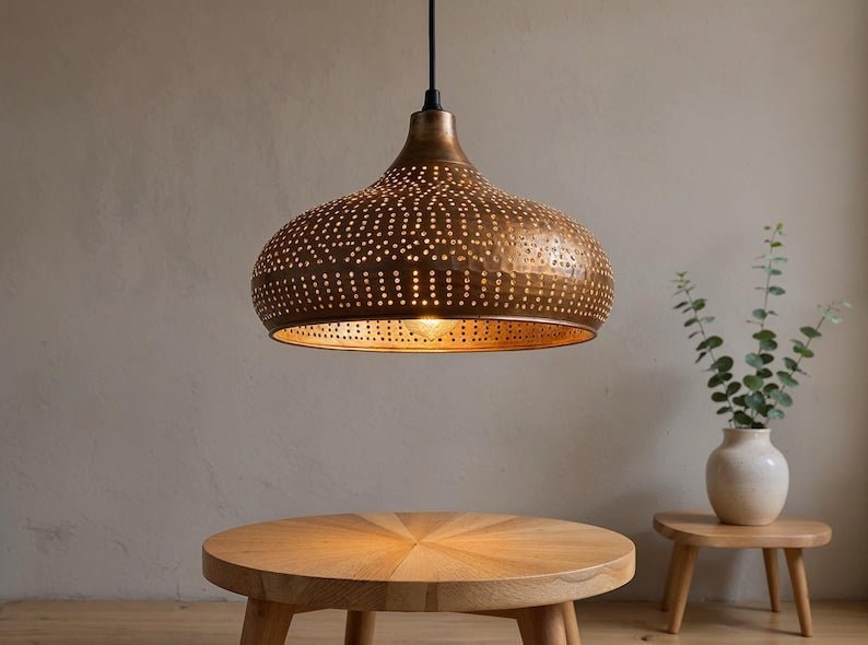 Handmade Hammered Copper Moroccan Pendant Light: Boho Rustic ChandelierHandmade Hammered Copper Moroccan Pendant Light: Boho Rustic Chandelier