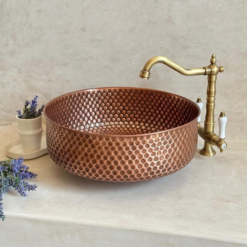 Handmade Hammered Copper Sink – Vintage Bathroom Vessel with Antique FinishHandmade Hammered Copper Sink – Vintage Bathroom Vessel with Antique Finish