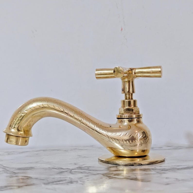 Transform your bathroom into a timeless space of artisan beauty with this handmade Moroccan brass faucet. Skillfully crafted by master artisans in Morocco, this faucet is a celebration of traditional craftsmanship, rich cultural heritage, and functional design. Made from 100% solid brass and finished by hand, each piece exudes a unique charm that can’t be replicated by mass-produced fixtures.