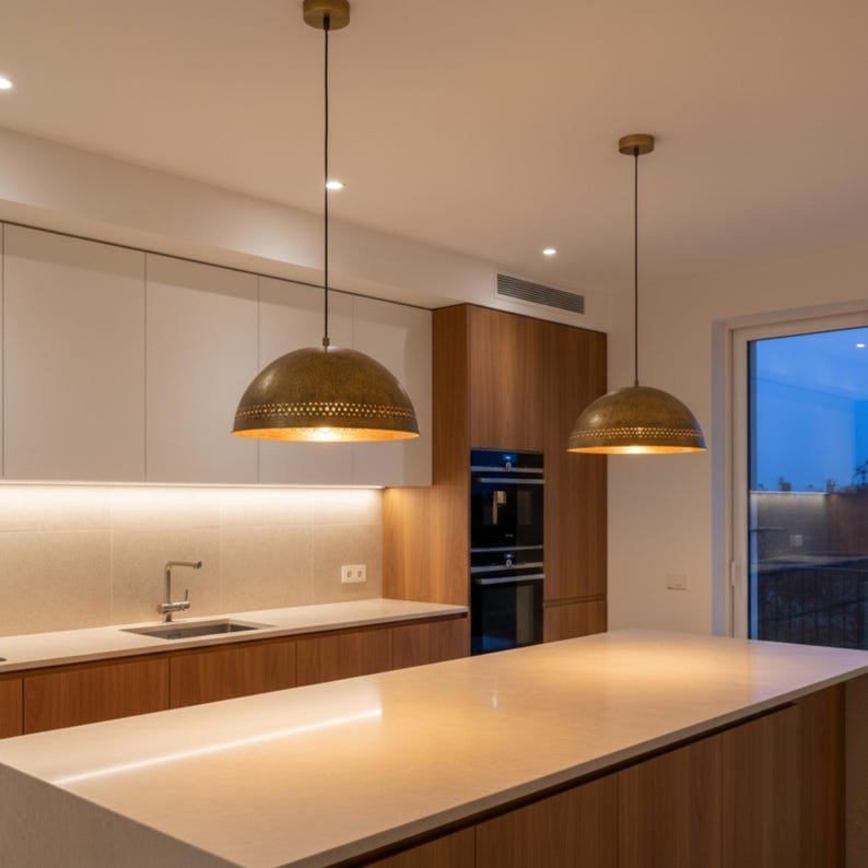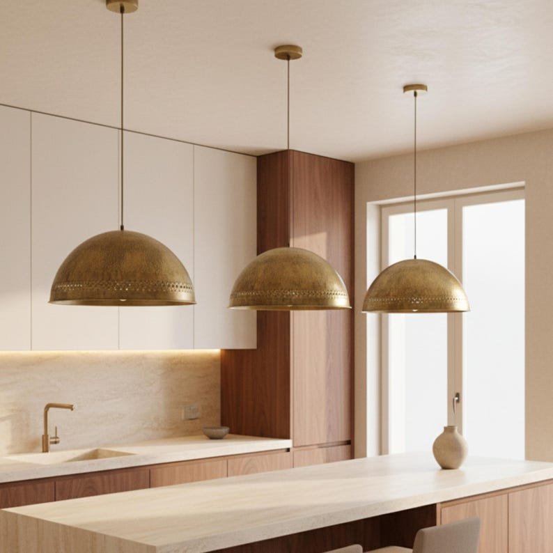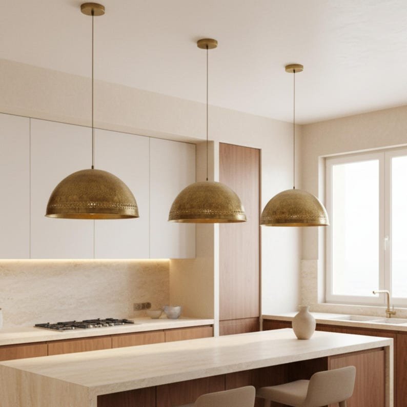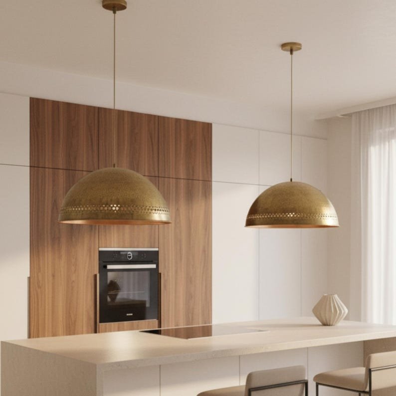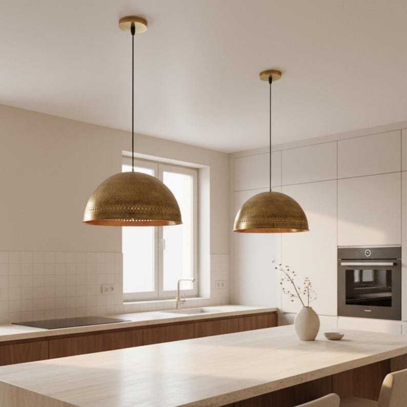 Handmade Moroccan Bronze Dome Pendant – Brass Ceiling Light for Kitchen, Dining Room, or Living Space