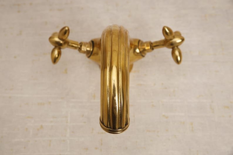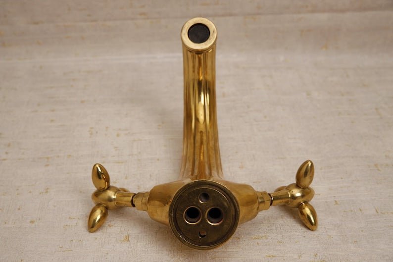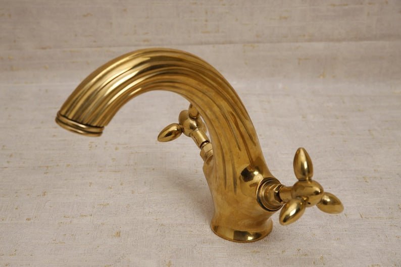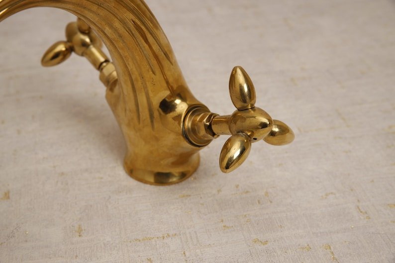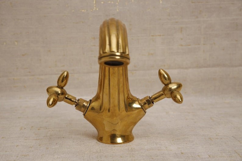 This solid brass tap is designed in a unique vintage style with elegant rounded handles and a sculpted spout. Its antique brass faucet finish adds a touch of old-world charm, making it a perfect statement piece for your bathroom or kitchen. Whether you need a mixer faucet for a sink or a rustic brass faucet for a traditional wash area, this versatile design will enhance any interior.