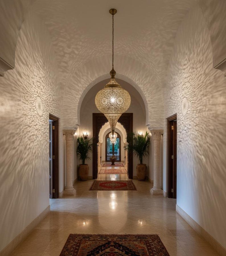 Simple Moroccan pendant lamp. A stunning Moroccan style hand-made ceiling light fixture- a pendant lamp is designed to enhance the exotic beauty of your home decor. Exclusive custom lighting designs from Arabian Home Décor will ensure that this Moroccan piece of art will complement your existing décor and completely enhance the ambiance by filling in the portion of darkness while leaving the remaining area soothing and serene