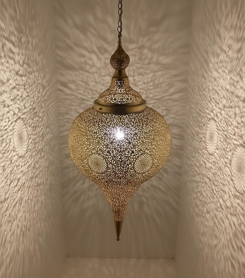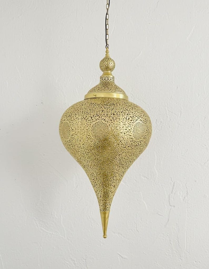 Handmade Moroccan Brass Pendant Light: Boho Ceiling LampHandmade Moroccan Brass Pendant Light: Boho Ceiling Lamp