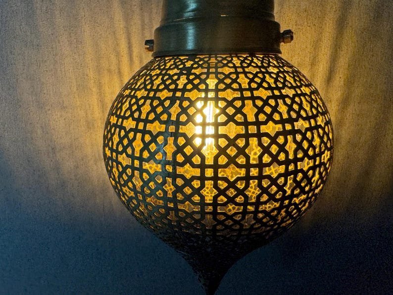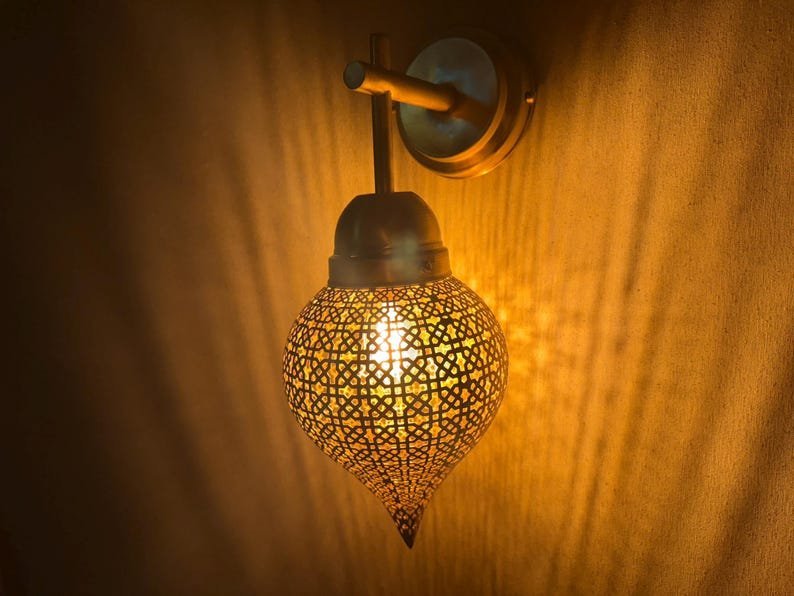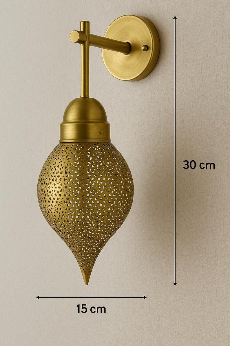 Handmade Moroccan Brass Wall Sconce: Perforated Teardrop Boho LightHandmade Moroccan Brass Wall Sconce: Perforated Teardrop Boho Light