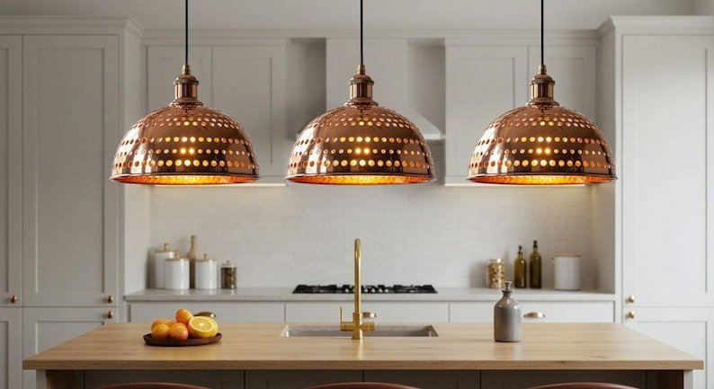 Handmade Moroccan Copper Pendant Light, Perforated Dome Ceiling LampHandmade Moroccan Copper Pendant Light, Perforated Dome Ceiling Lamp