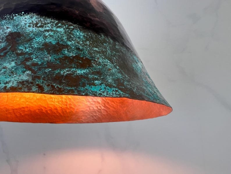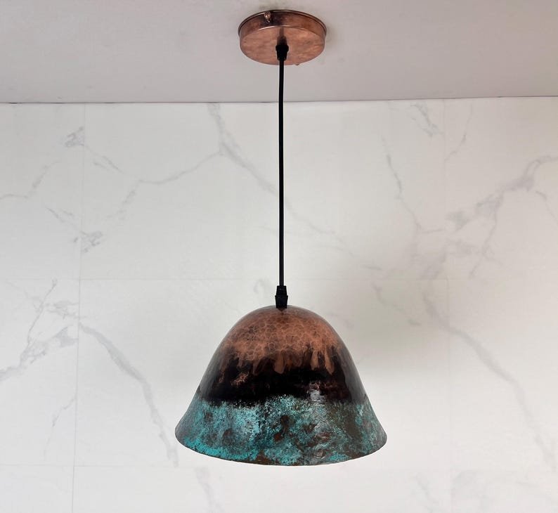 Handmade Patina Copper Dome Pendant Light: Rustic Verdigris FinishHandmade Patina Copper Dome Pendant Light: Rustic Verdigris Finish