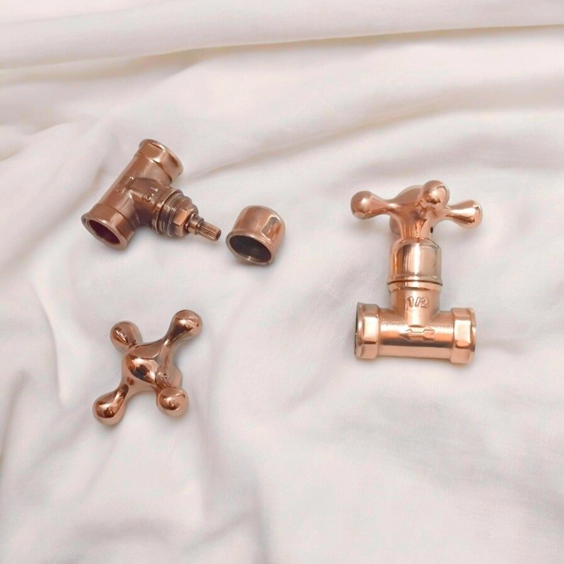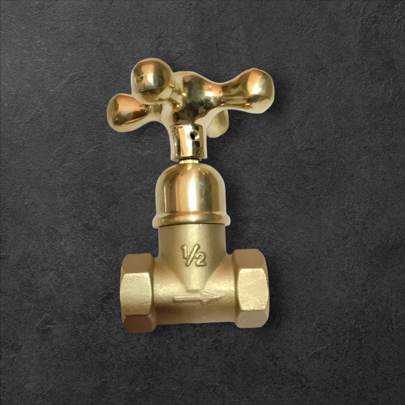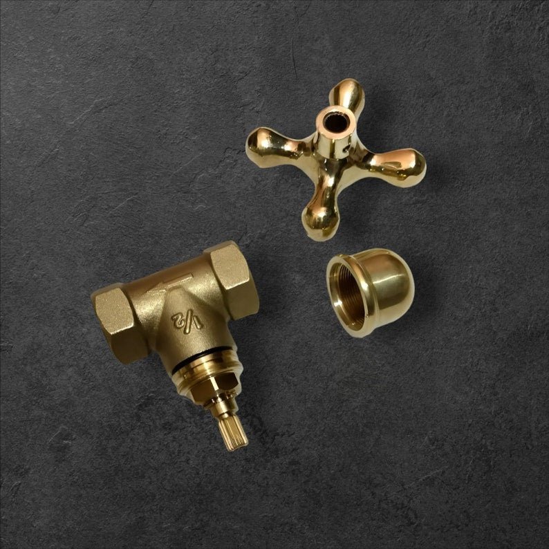 Set Of 2 Handmade Solid Brass Faucet Handles With Valve And T Brass Valve Body. With standard US Plumbing (1/2 inches), makes it easy to install.
