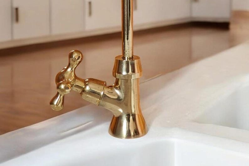 Experience timeless elegance with this solid brass water dispenser, designed for durability and style. This handmade single hole kitchen faucet delivers a perfect blend of classic aesthetics and modern functionality, making it an ideal choice for any kitchen setup.