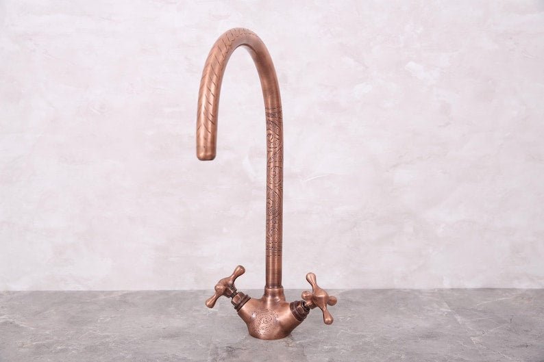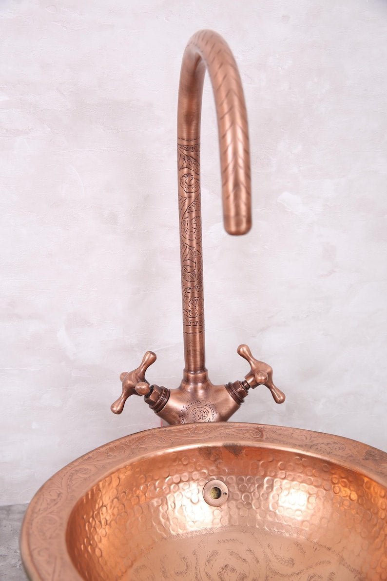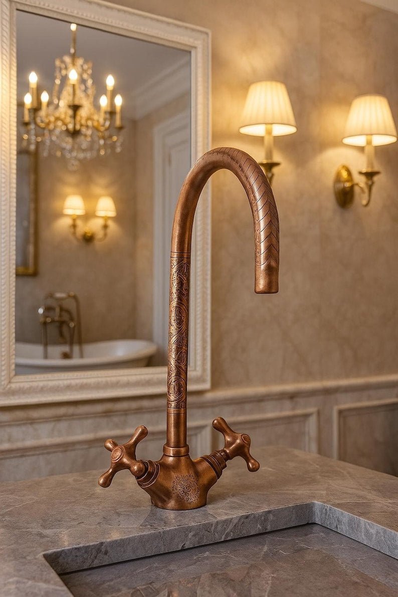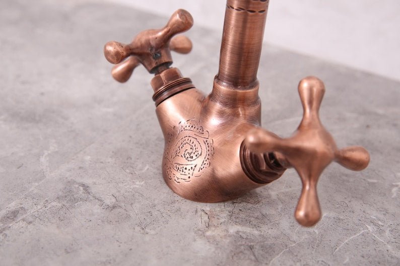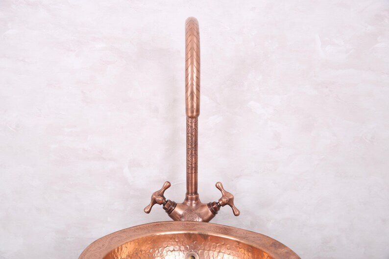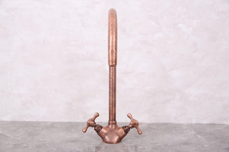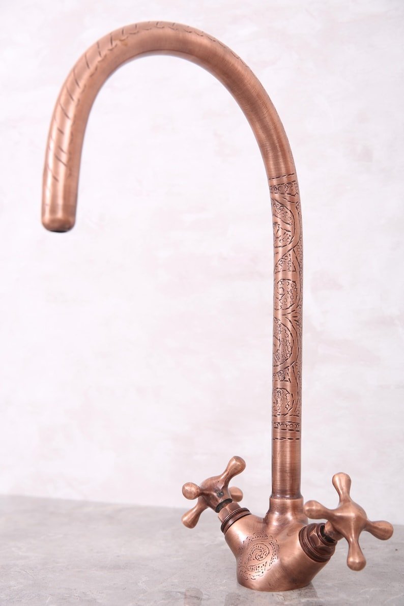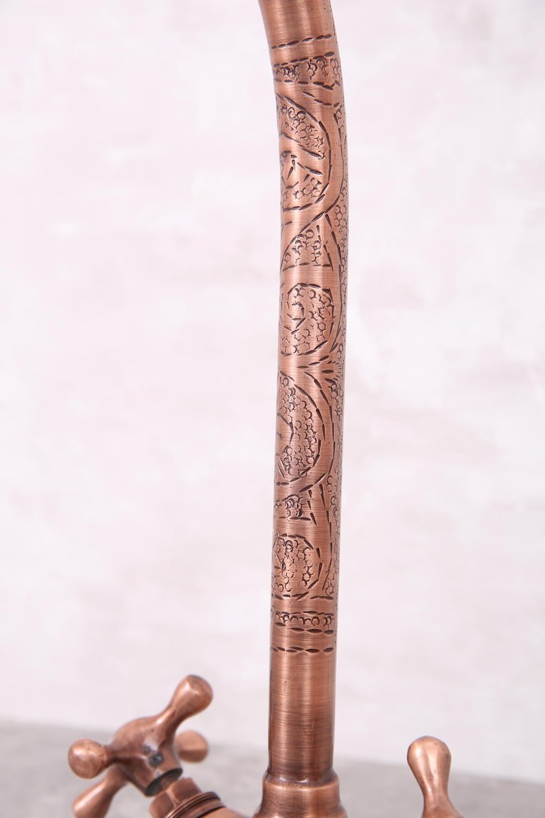 Handmade Unlacquered Moroccan Brass Faucet – Double Handle Sink Tap – Antique Brass Shower System – Crafted by Skilled Moroccan ArtisansHandmade Unlacquered Moroccan Brass Faucet – Double Handle Sink Tap – Antique Brass Shower System – Crafted by Skilled Moroccan Artisans