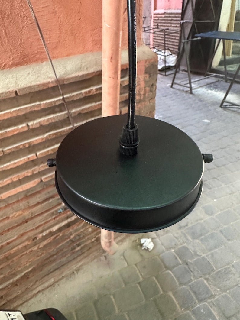 This handmade black brass pendant light features a hammered dome shape with a matte black exterior and warm golden interior that casts a cozy glow. Its modern yet timeless design makes it perfect for kitchens, dining rooms, living rooms, or even restaurants and cafés.