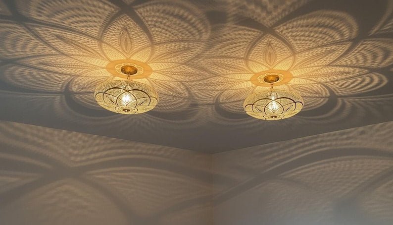 Simple Moroccan pendant lamp. A stunning Moroccan style hand-made ceiling light fixture- a pendant lamp is designed to enhance the exotic beauty of your home decor. Exclusive custom lighting designs from Arabian Home Décor will ensure that this Moroccan piece of art will complement your existing décor and completely enhance the ambiance by filling in the portion of darkness while leaving the remaining area soothing and serene
