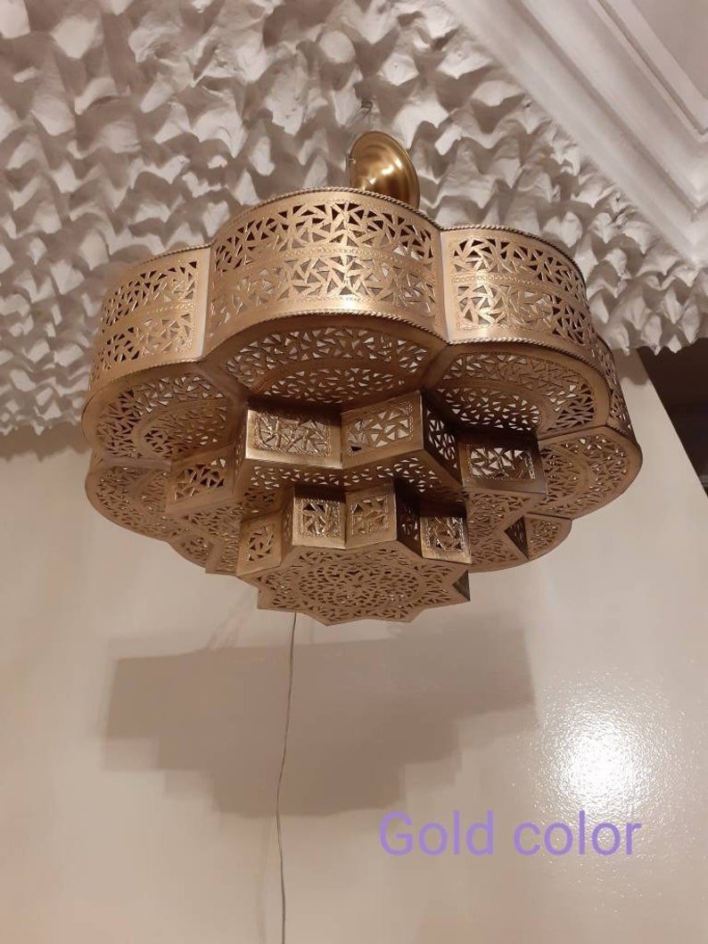 Moroccan Handmade Brass Pendant - Perfect Ceiling Fixture Decoration for Any RoomMoroccan Handmade Brass Pendant – Perfect Ceiling Fixture Decoration for Any Room