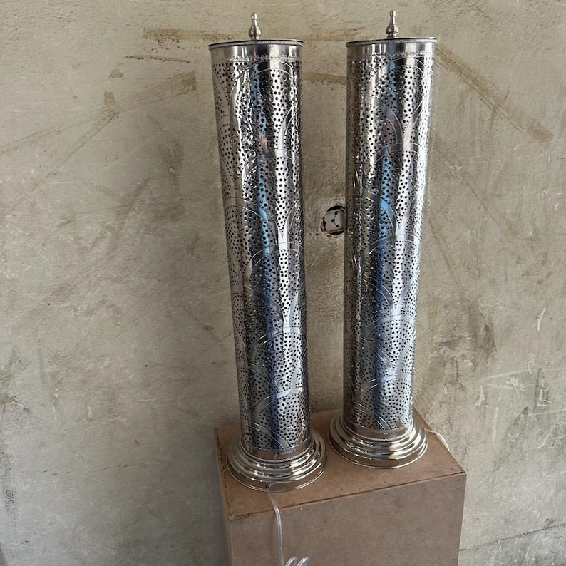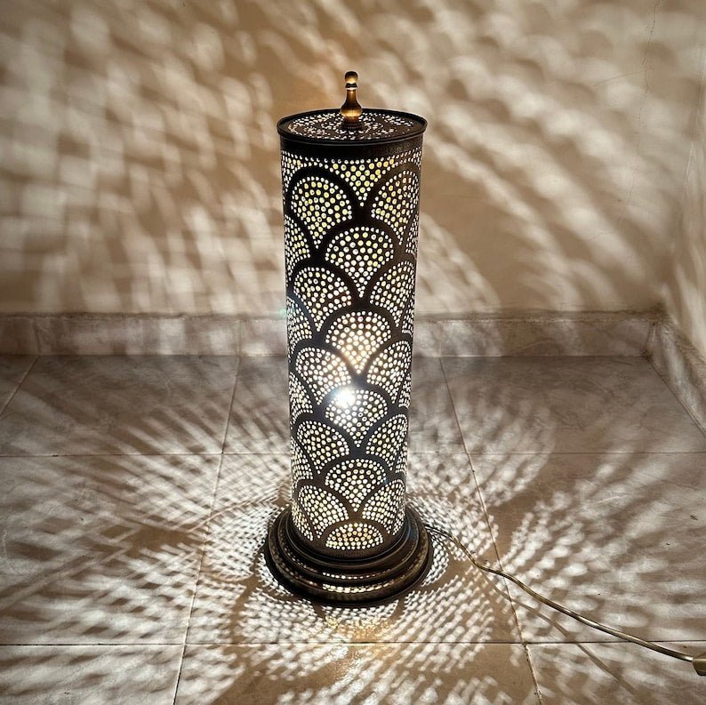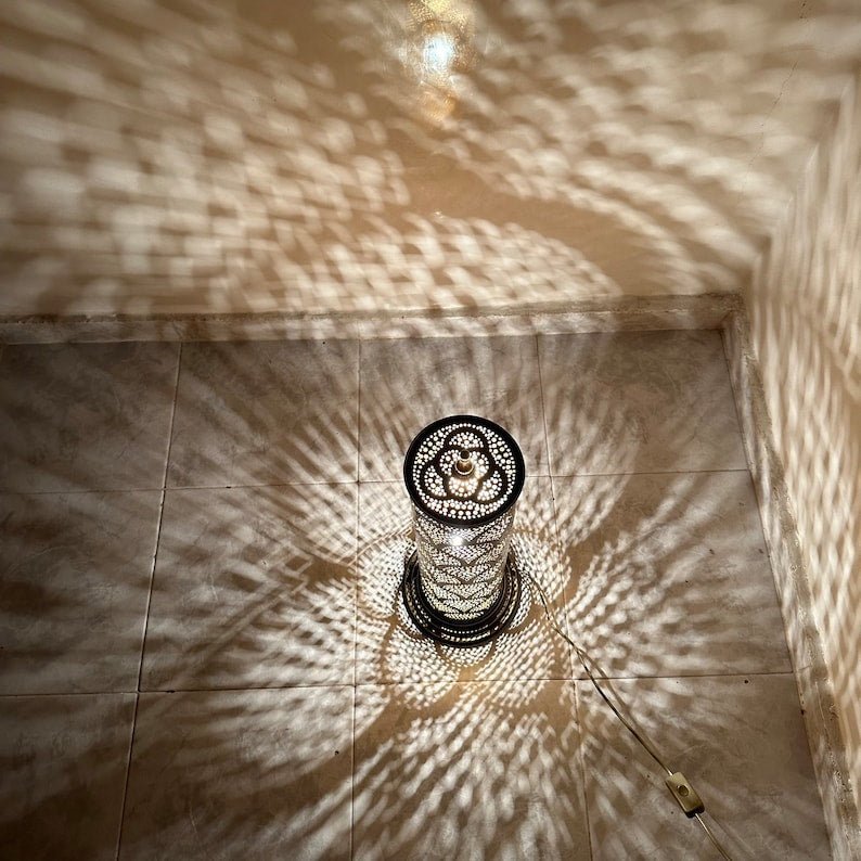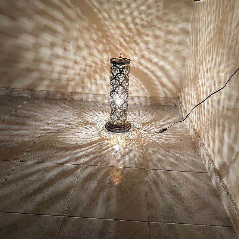 Table and floor lamp producing a great effect in the room when lighting, giving a Moroccan and oriental stye to your interior desing.