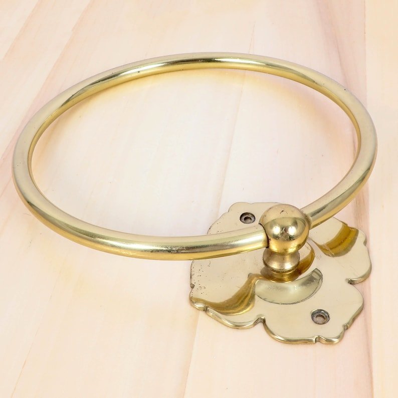 Vintage Towel rack / Towel ring holder / Ring Curtain Holder. (A screw is not included). The item is about 22.5 cm high, 18.7 cm wide. The ring is 19 cm diameter. It weighs about 338 grams.