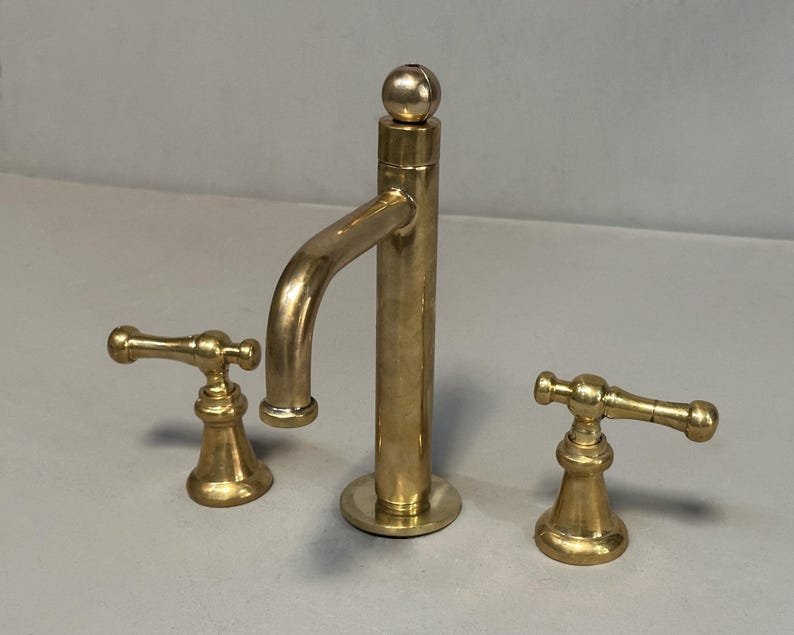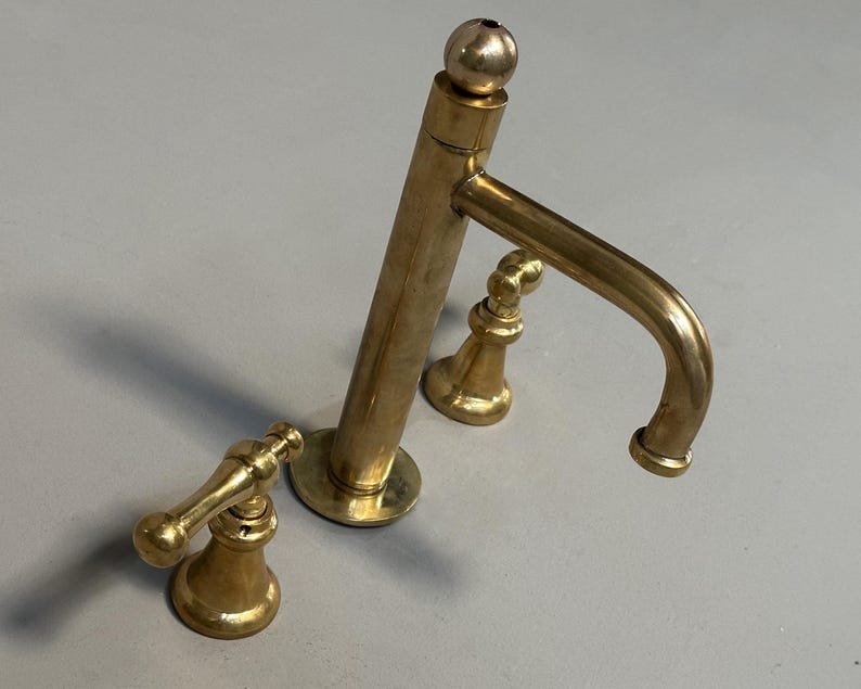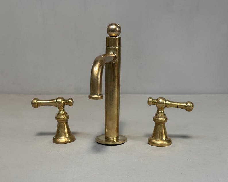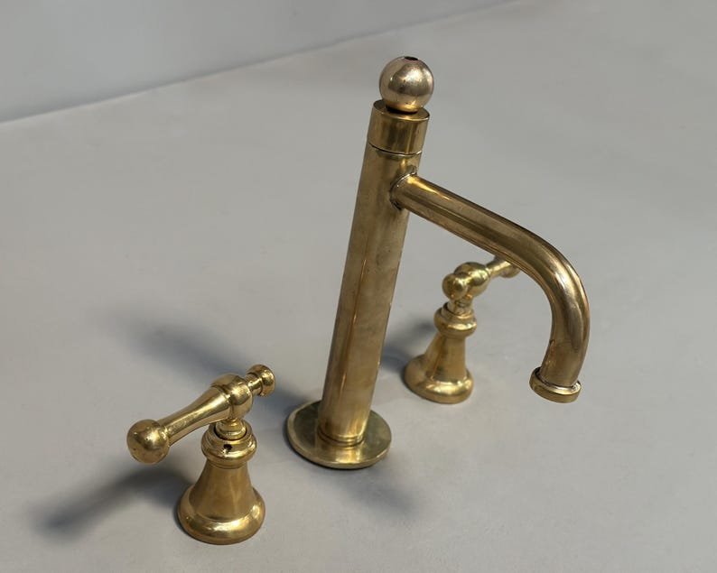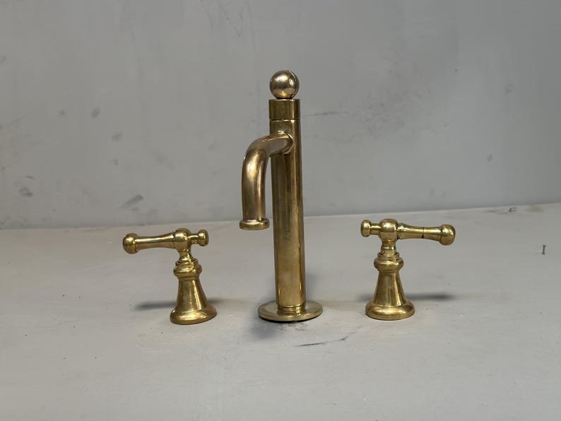 The unlacquered brass faucet can come with other different handles.