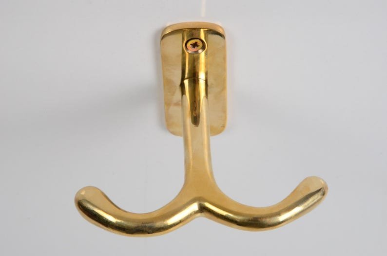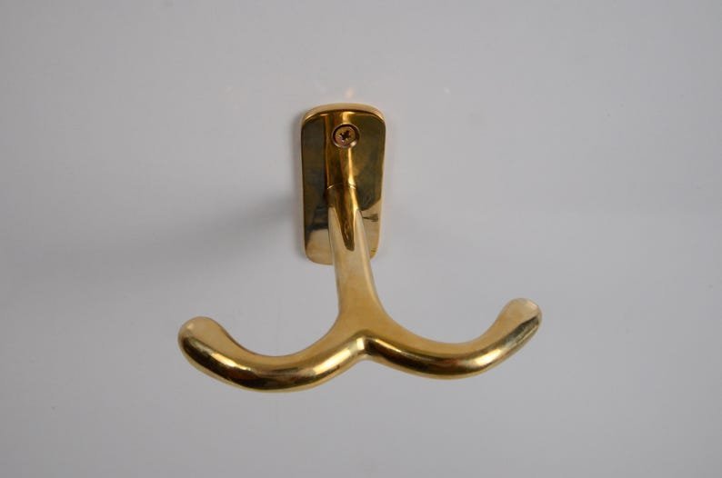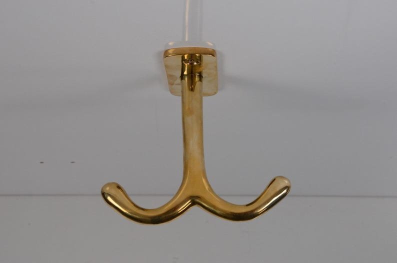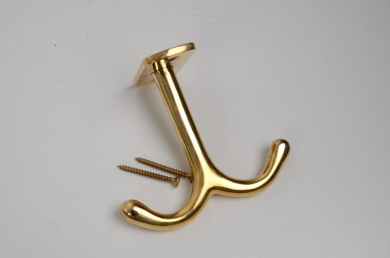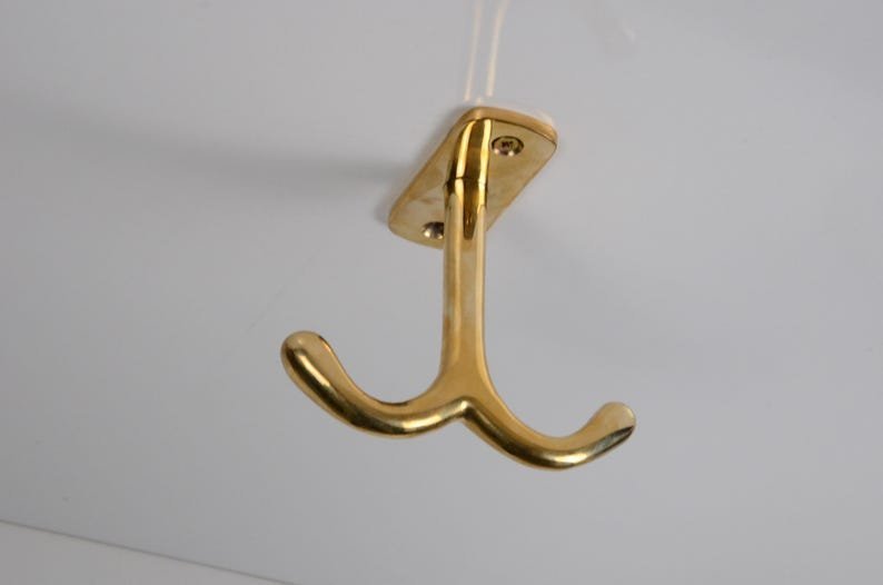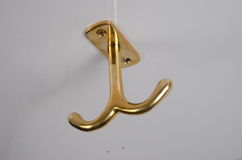 This handcrafted unlacquered brass ceiling double hook is made with precision and care, focusing on both aesthetic and function. Its warm tones and natural finish will elevate any space, adding a timeless, elegant touch.