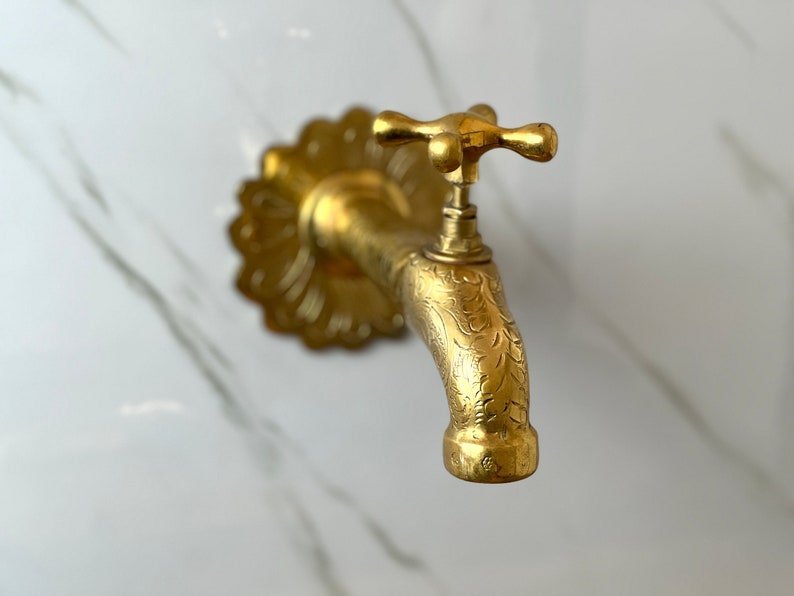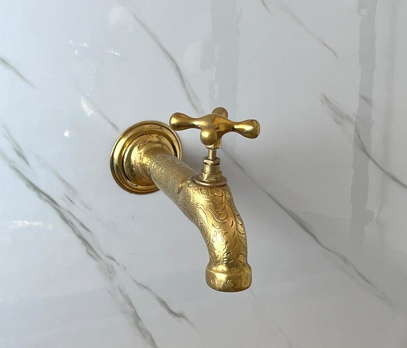 Unlacquered Brass Engraved Moroccan Faucet, Handmade Moroccan Faucet, Brass Wall Mount Water Tap.Unlacquered Brass Engraved Moroccan Faucet, Handmade Moroccan Faucet, Brass Wall Mount Water Tap.