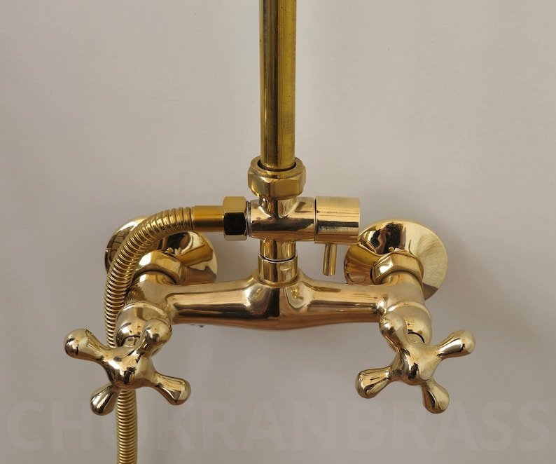 Unlacquered Brass Shower System – Handcrafted Elegance with Rain and Hand Shower