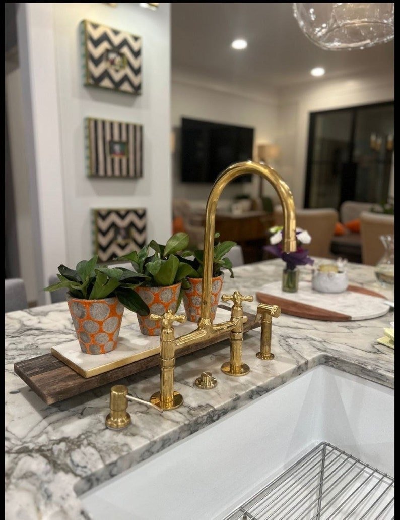 Enhance your kitchen with our handmade Antique Brass Kitchen Faucet, crafted from solid unlacquered brass. This elegant faucet combines timeless design with modern functionality, providing a durable and stylish addition to any kitchen sink. Enjoy the unique patina that develops naturally over time, adding character to your kitchen.
