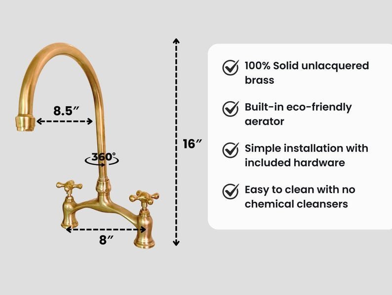 Explore the beauty and durability of pure brass with our premium Unlacquered Brass Bridge Faucet. Order yours now and experience the perfect blend of luxury and practicality.