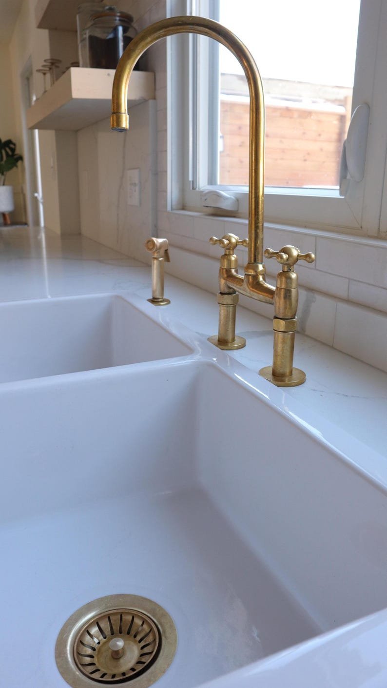 Ready to transform your kitchen into a space of elegance and style? Our Unlacquered Brass Bridge Faucet is designed to be the centerpiece of any kitchen, offering both durability and timeless appeal. Crafted from premium certified brass.