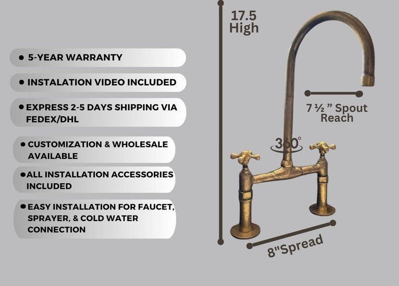 Explore the beauty and durability of pure brass with our premium Unlacquered Brass Bridge Faucet. Order yours now and experience the perfect blend of luxury and practicality.