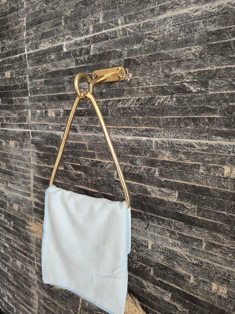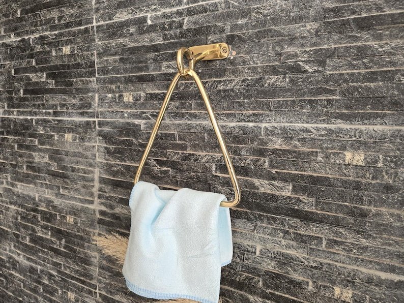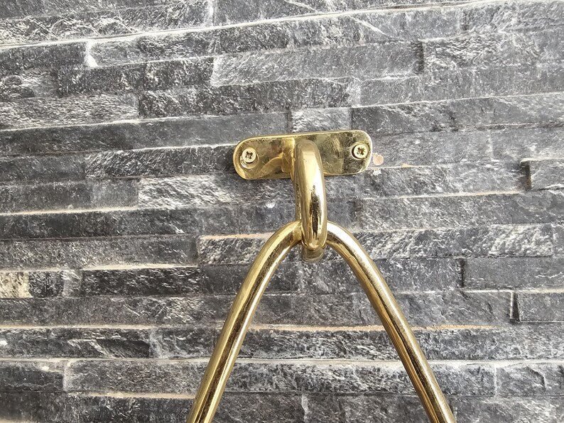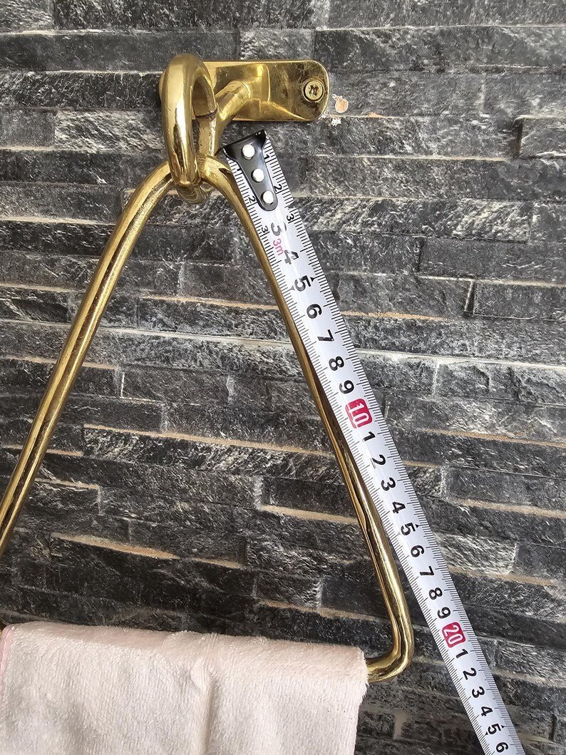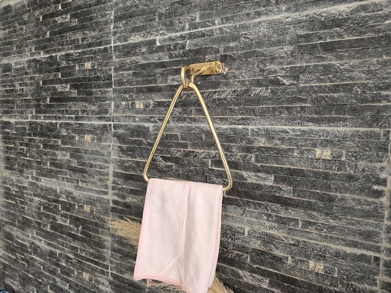 Unlacquered Brass Towel Holder - Wall Mounted Gold Bathroom Hardware - Handmade Moroccan Decor - Modern Brass Triangle Towel RingUnlacquered Brass Towel Holder – Wall Mounted Gold Bathroom Hardware – Handmade Moroccan Decor – Modern Brass Triangle Towel Ring