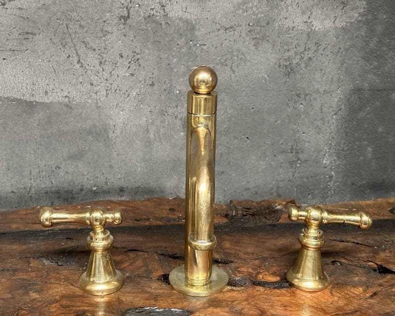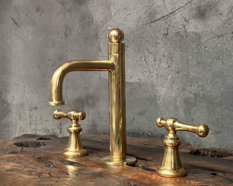We pride ourselves on being honest and transparent. Your satisfaction is our priority, and we’re always here to help. Brass Victorian Bathroom Faucet, Widespread Bathroom Sink Faucet, Unlacquered Brass Deck Mounted Sink Faucet