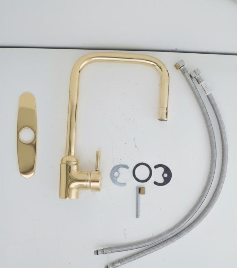 ✔ Beautiful unlacquered brass finish that naturally develops a unique patina over time, making each brass kitchen faucet one-of-a-kind.